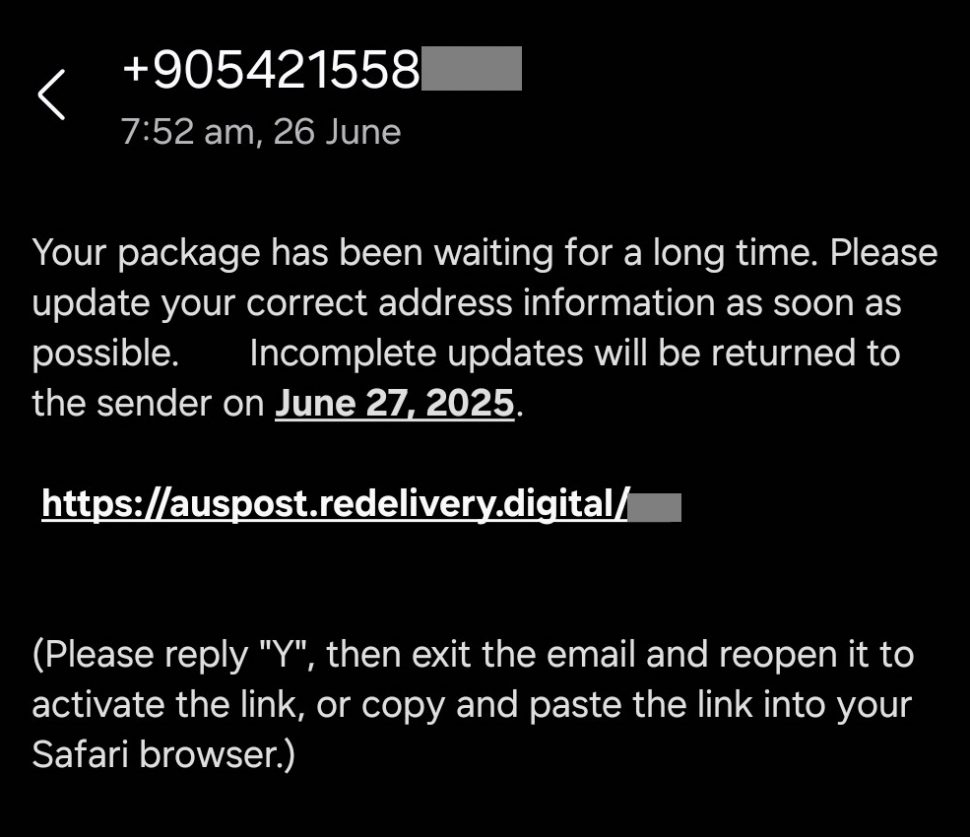 Visual: Tracking mesage pops up on screen from Aus Post that says "Your parcel 'Wig' is expected to arrive on Monday"