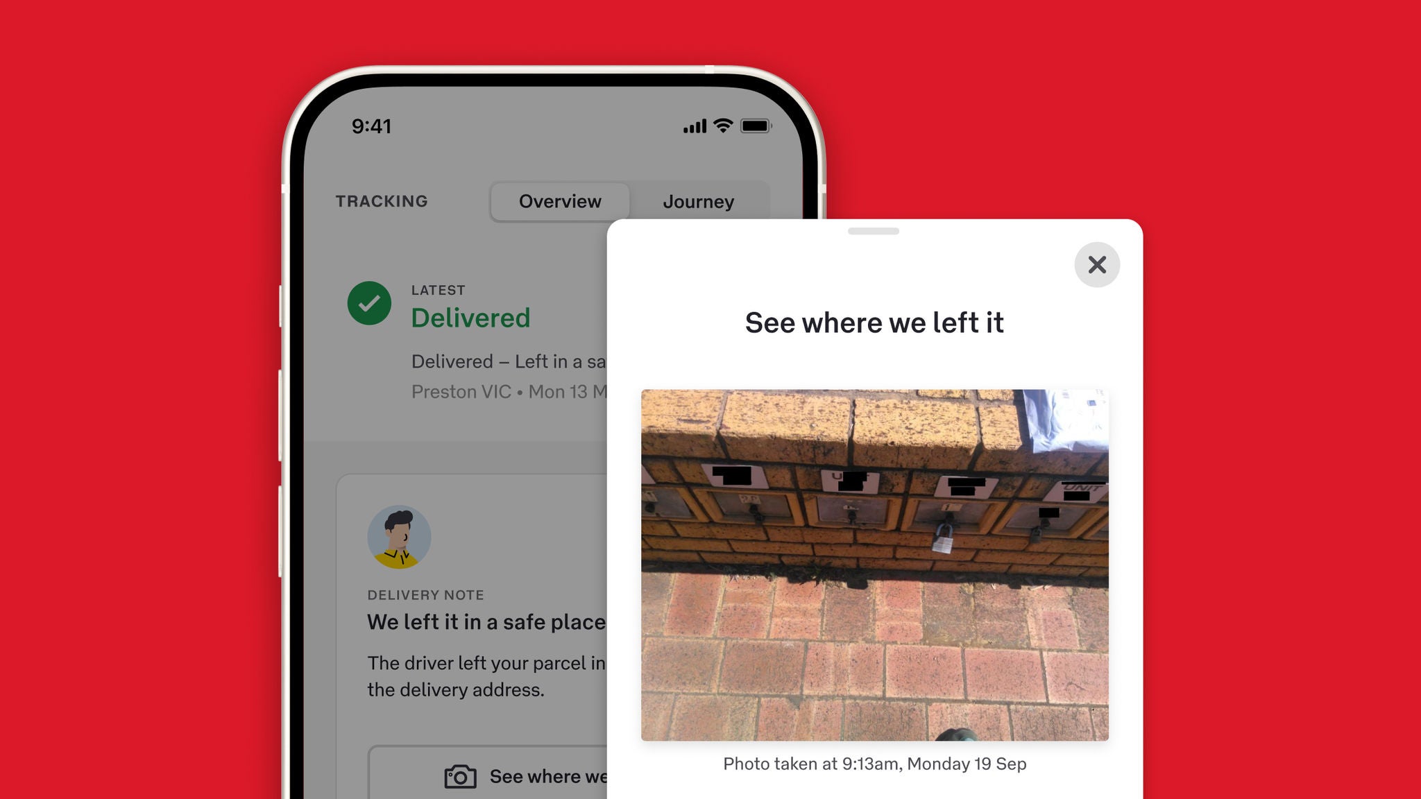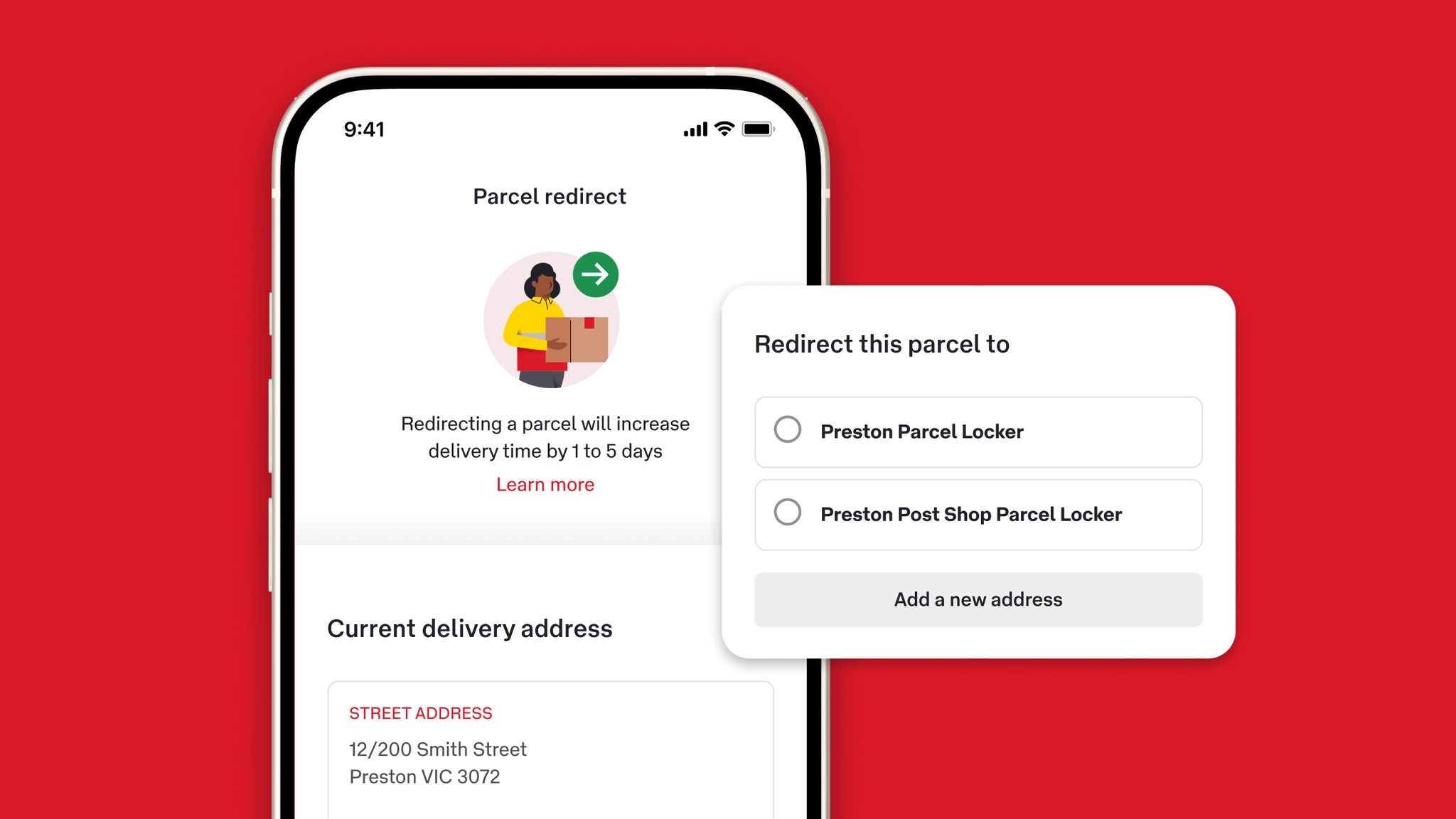 3 Terms and conditions apply. The option to have parcel left in a safe place will only be available if the sender has agreed to allow it. This applies to parcels in transit and addressed to a street address. Additionally, the shipping information provided by the sender must include registered email address, mobile number, or other details that allow us to match the parcel to the receiver’s MyPost account. Learn more about having your parcel left in a safe place.