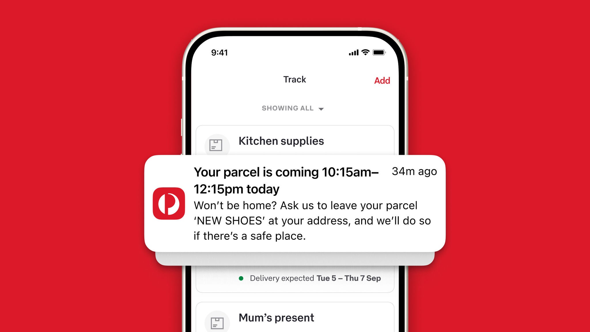 Re-route parcels in transit or choose a safe place3 for delivery and receive photo proof when it’s arrived. You can also nickname your parcels for easy identification.