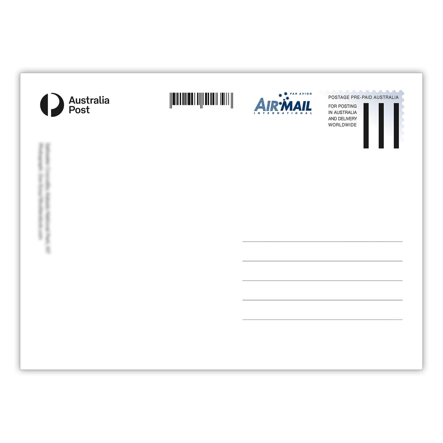 Prepaid postcards can be posted from any red post box located in Australia or at your local Australia Post retail outlet and can be sent worldwide or to domestic locations.